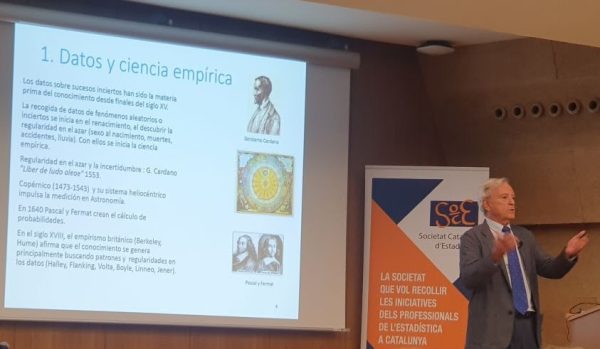 Un dels moments destacats de la jornada va ser la conferència del Dr. Daniel Peña, catedràtic emèrit de la Universidad Carlos III de Madrid, titulada “La contribución de la Estadística a la Inteligencia Artificial”. En la seva ponència, el Dr. Peña va reflexionar sobre l’evolució de l’aprenentatge estadístic en l’era del big data i sobre les sinergies que es poden establir entre els mètodes estadístics explicables i les tècniques modernes d’intel·ligència artificial. La sessió va ser presentada i moderada per la Dra. Montserrat Guillén, catedràtica de la Universitat de Barcelona (enllaç a les diapositives; enllaç a la publicació “Investigación Económica con Datos Masivos”).